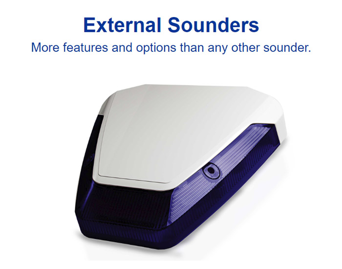 This ALL NEW intelligent external sounder is designed for a wide range of installations, from small domestics through to large commercials. Incorporating a high quality polycarbonate cover able to withstand the worst environmental conditions, and is available in a variety of colours.